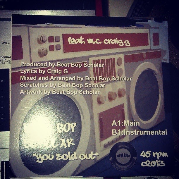 Beat Bop Scholar, 19 years old producer, is back with a new release following his debut album Authentic Minded. He makes his debut on vinyl by releasing his new track "You Sold Out" featuring Juice Crew member Craig G on the vocals. Side A features the main track with Craig G. Side B features the instrumental authentically produced with raw drums and ill sound by Beat Bop Scholar. Pressed on 7" vinyl and to be played at 45 RPM for its superior sound. 300 copies were only pressed for this limited release with a picture cover designed by Beat Bop Scholar as well. Hip Hop fans will also enjoy the scratches provided at the end from original vinyl. Beat Bop Scholar is also known for his hip hop knowledge.